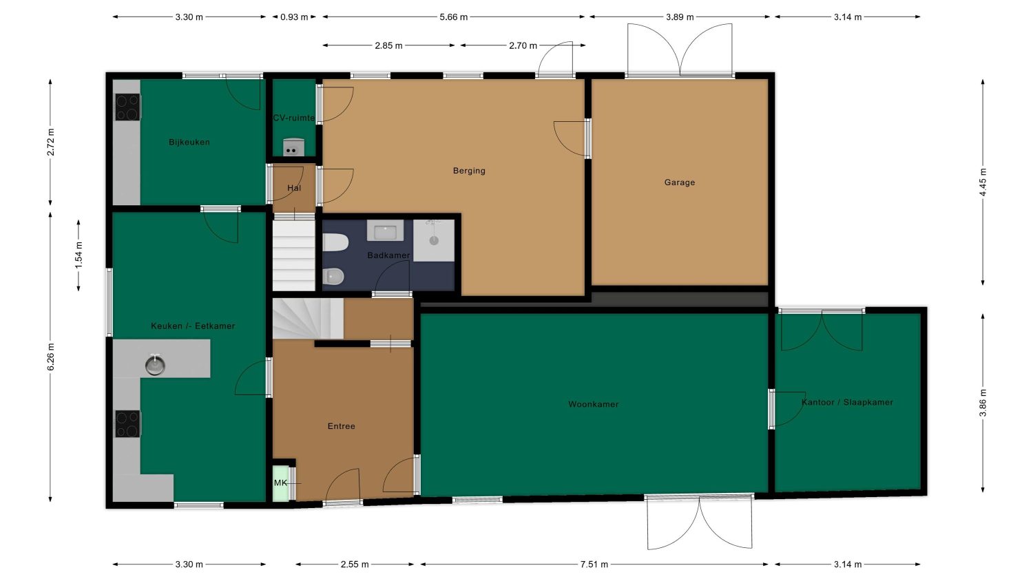 Gelijkvloers wonen mogelijk dankzij de slaapkamer en badkamer op de begane grond;