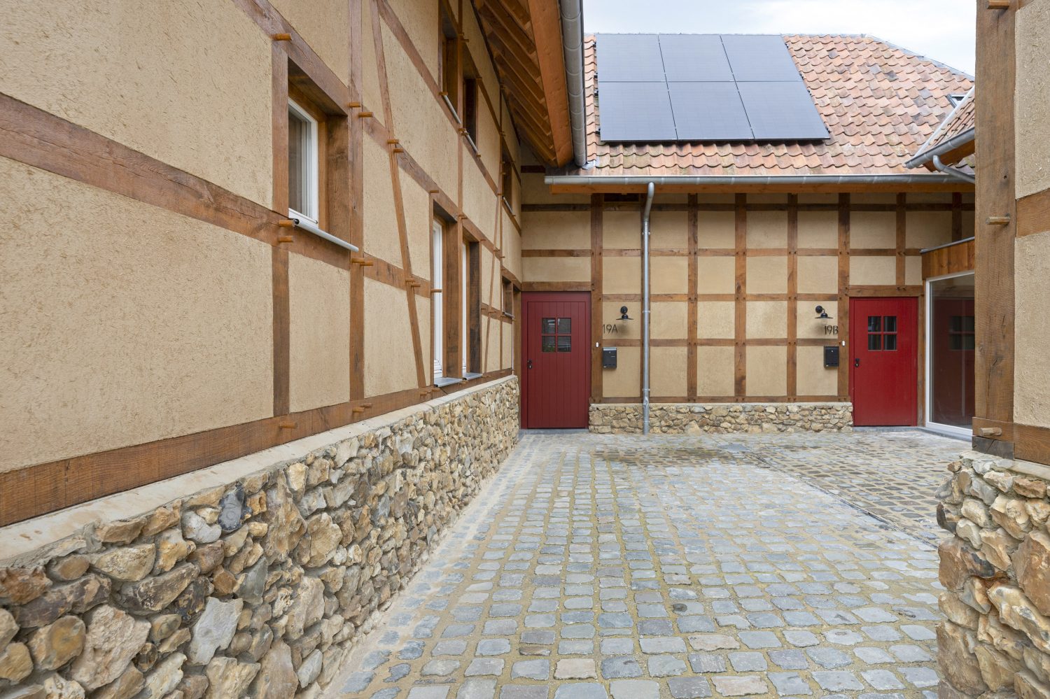 Bij de binnencour is de entree van deze fraaie woning. Voordat u naar binnen loopt, bewonder de pure schoonheid van deze vakwerkhoeve. Dit is een bijzondere plek om te wonen…