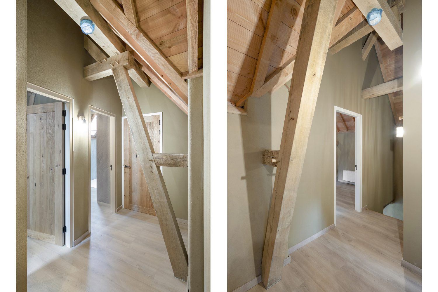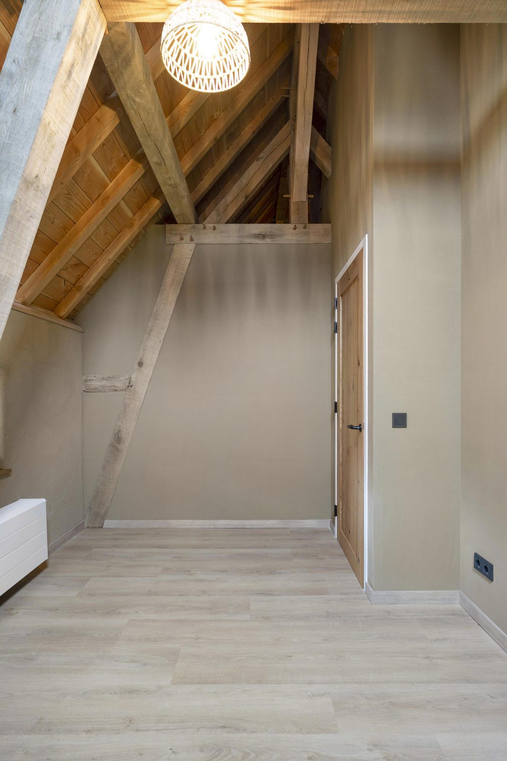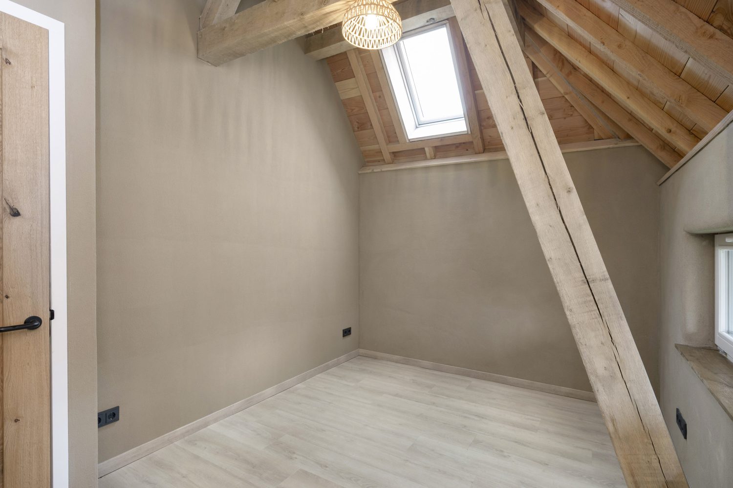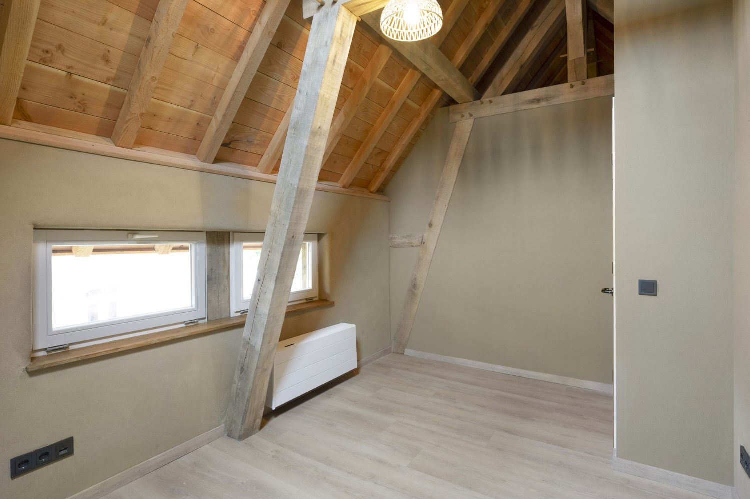 Via de trap in de keuken is de eerste verdieping te bereiken, waar twee slaapkamers en een extra badkamer zijn. Ook hier ziet u kamers met sfeer, mede dankzij de vakwerkconstructie en de royale hoogte. De slaapkamers zijn circa 19 en 11 m² groot, perfect om vanuit huis te werken of voor de kinderen. Of kiest u ervoor om de grootste slaapkamer als master bedroom te gebruiken?