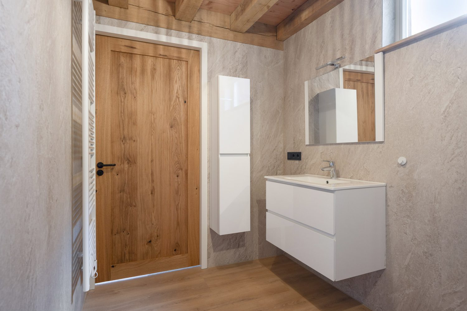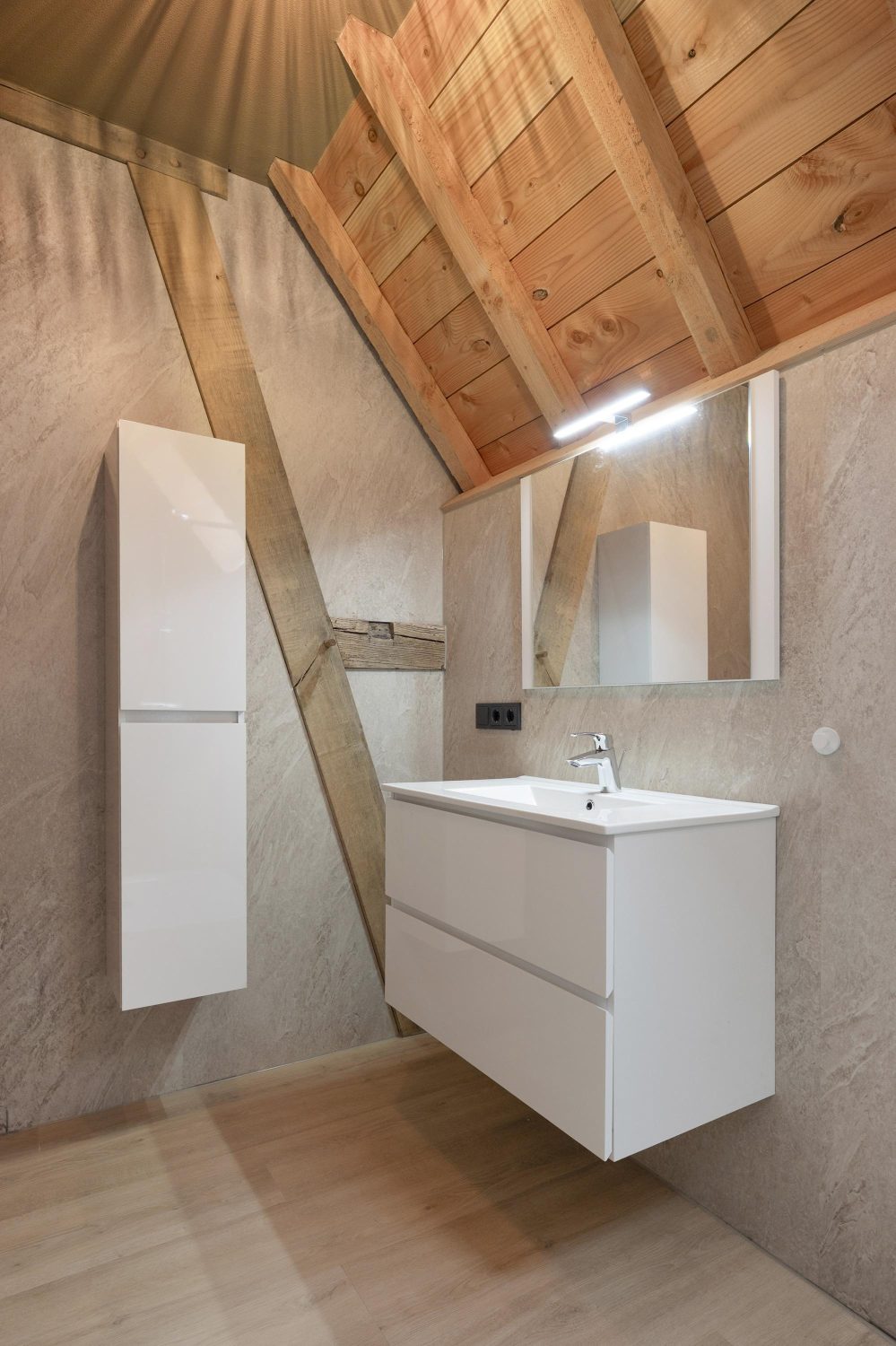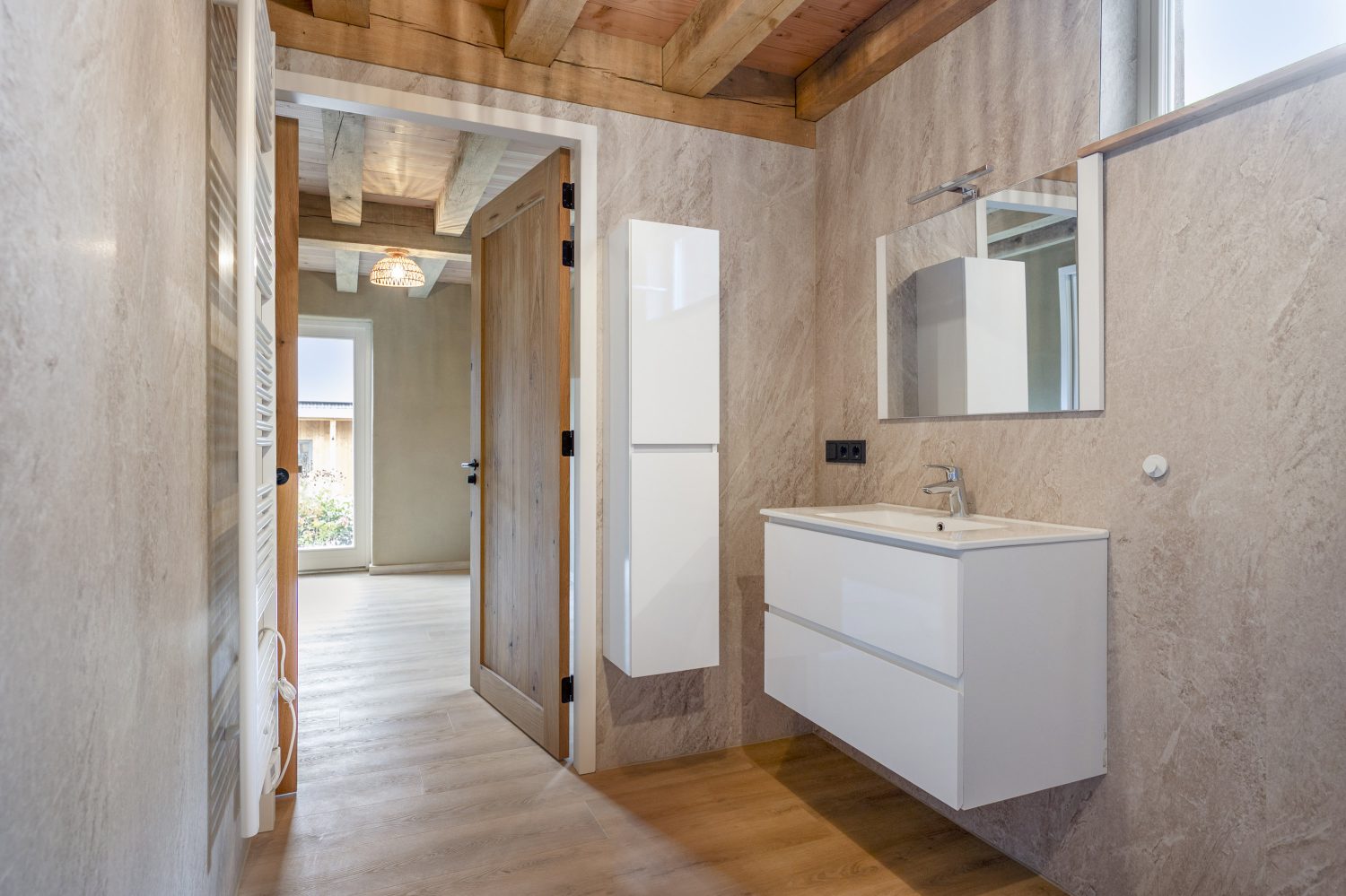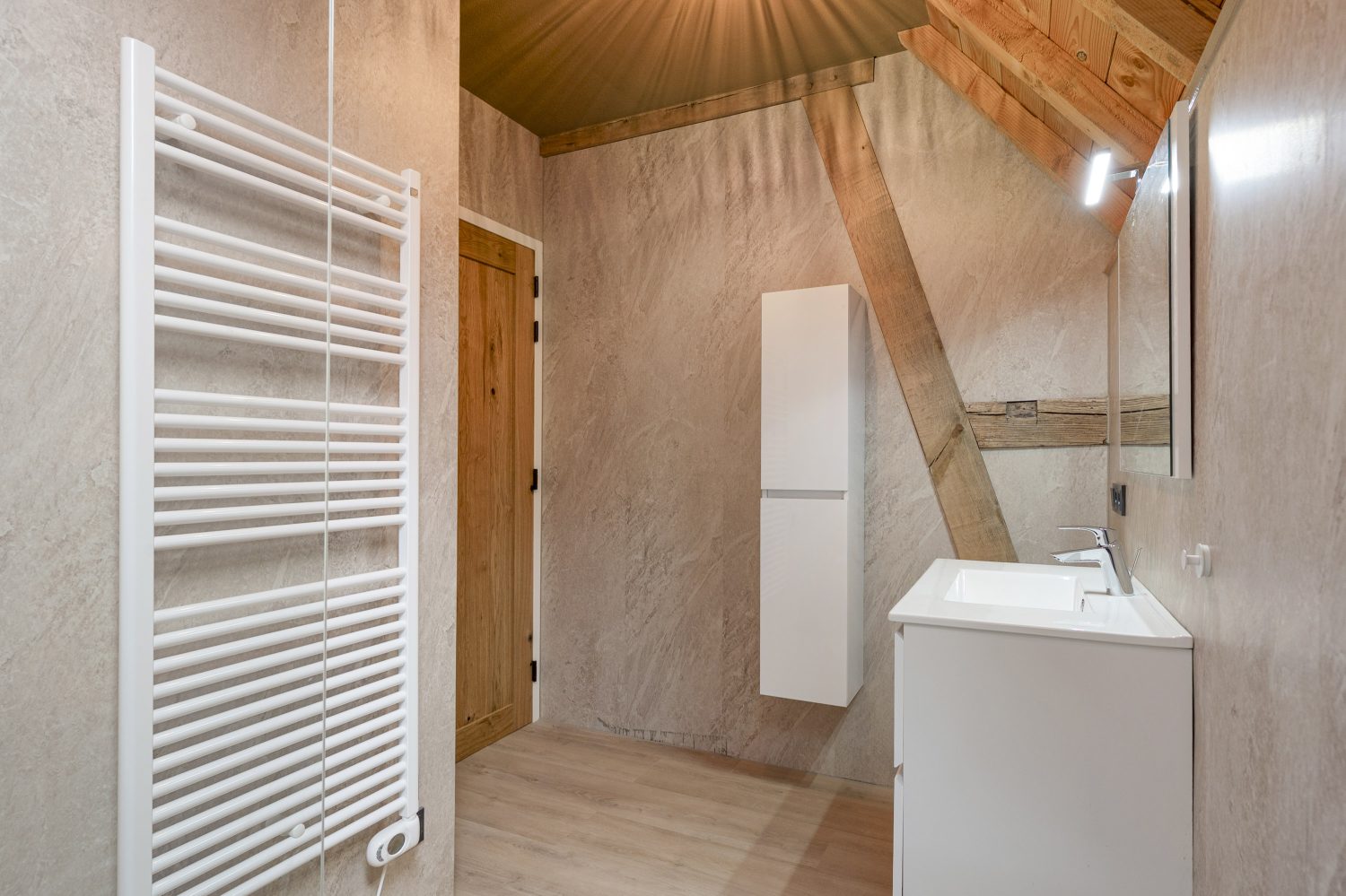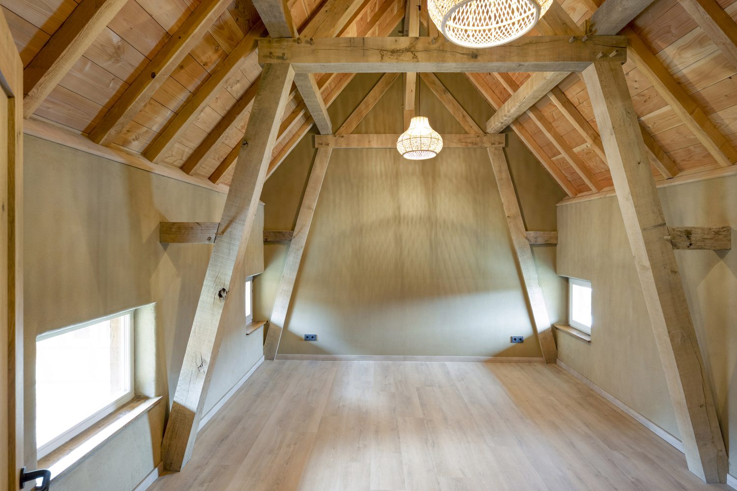 Via de trap in de keuken is de eerste verdieping te bereiken, waar twee slaapkamers en een extra badkamer zijn. Ook hier ziet u kamers met sfeer, mede dankzij de vakwerkconstructie en de royale hoogte. De slaapkamers zijn circa 19 en 11 m² groot, perfect om vanuit huis te werken of voor de kinderen. Of kiest u ervoor om de grootste slaapkamer als master bedroom te gebruiken?